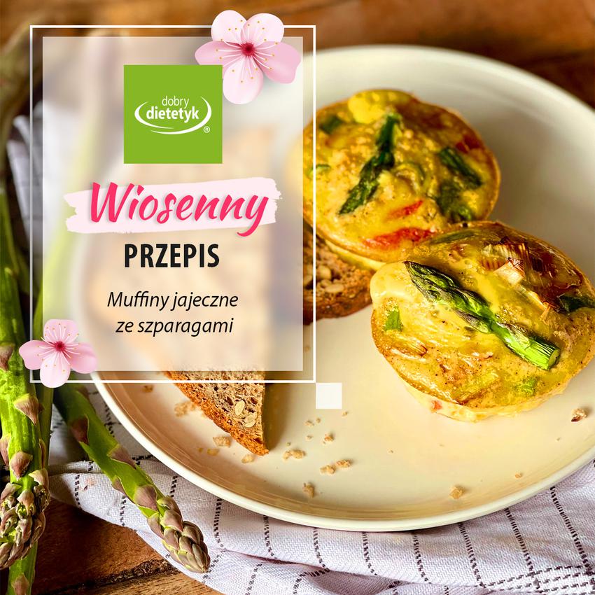 Pora posiekać w piórka, paprykę pokroić w kosteczkę. Ze szparagów usunąć zdrewniałe końce i pokroić je w około 1 cm plastry, pozostawiając końcówki. Poddusić warzywa (poza końcówkami szparagów) na patelni z oliwą, przełożyć do foremek na muffinki. Jaja roztrzepać z przyprawami (np. solą i pieprzem). Wlać do foremek, na wierzchu ułożyć końcówki szparagów. Zapiekać 20 minut w 200 stopniach.
